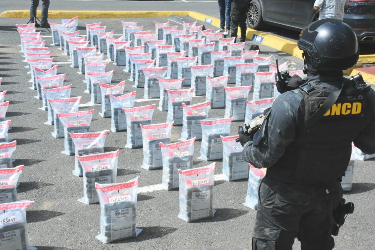 En total, fueron incautados 1,402 paquetes de cocaína, repartidos en dos lanchas rápidas interceptadas en el mar Caribe, frente a las costas de las provincias de San Pedro de Macorís y Santo Domingo.