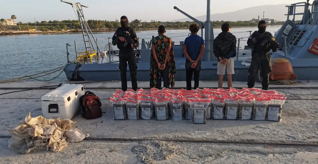SANTO DOMINGO.- La Dirección Nacional de Control de Drogas (DNCD) y la Armada interceptaron una lancha con 424 paquetes de cocaína en las costas de la provincia Peravia y detuvo a tres dominicanos a bordo.