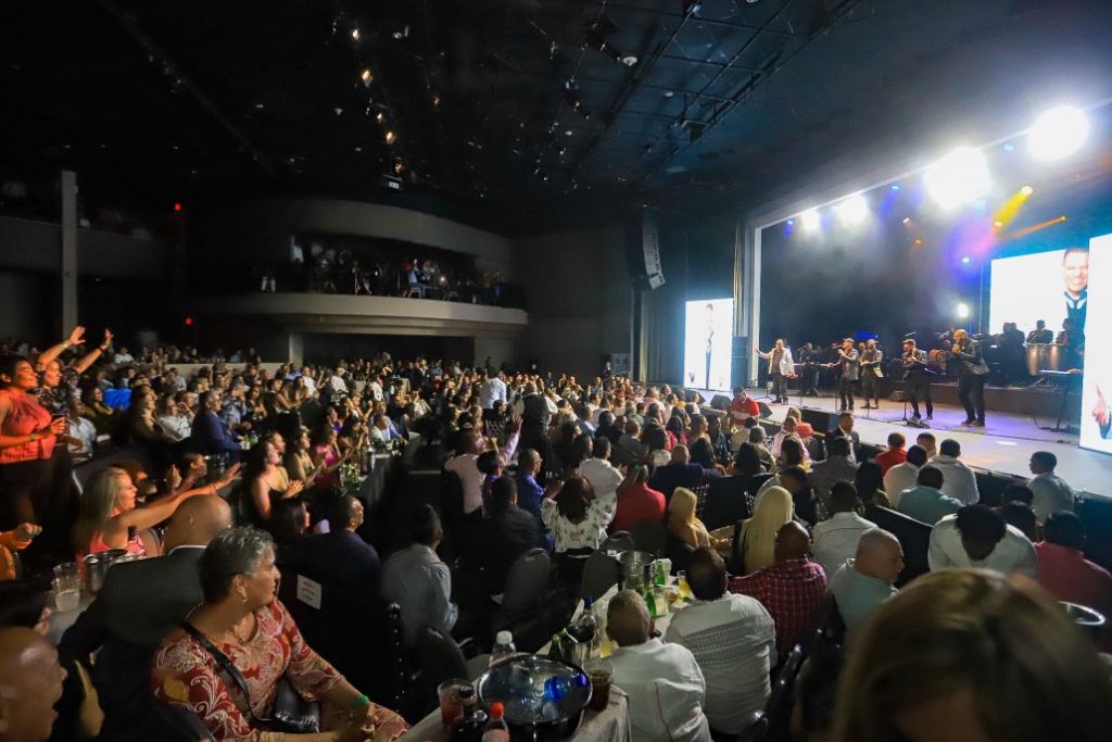 Antes de seguir disfrutando del impactante repertorio, el líder de esta famosa orquesta de 14 integrantes pidió a los fanáticos que se unan y le rindan un aplauso “a una figura que más que amigo fue un hermano”: el fallecido artista dominicano Johnny Ventura.