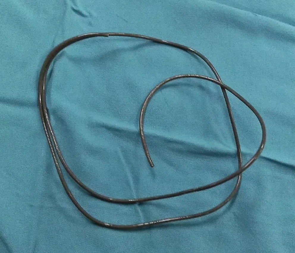 El cable, que tenía alrededor de 3 milímetros de ancho, estaba enrollado pero, afortunadamente para él, no se había adherido a la pared de la vejiga.