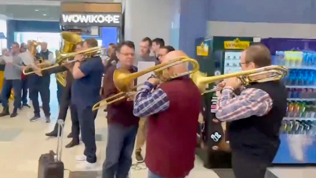 VIDEO: Orquesta del Kremlin relaja el ambiente en un aeropuerto de Moscú con vuelos suspendidos